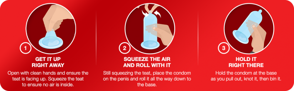 - ثبت الواقي الذكري في الأسفل و عندما تنتهي وتريد إزالته، اربطه ثم تخلّص منه بأمان