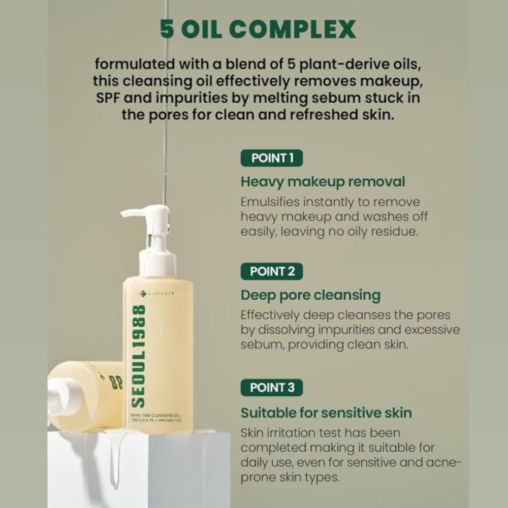 K-SECRET SEOUL 1988 Cleansing Oil : Pine Cica 1% + Probiotics, 200ml