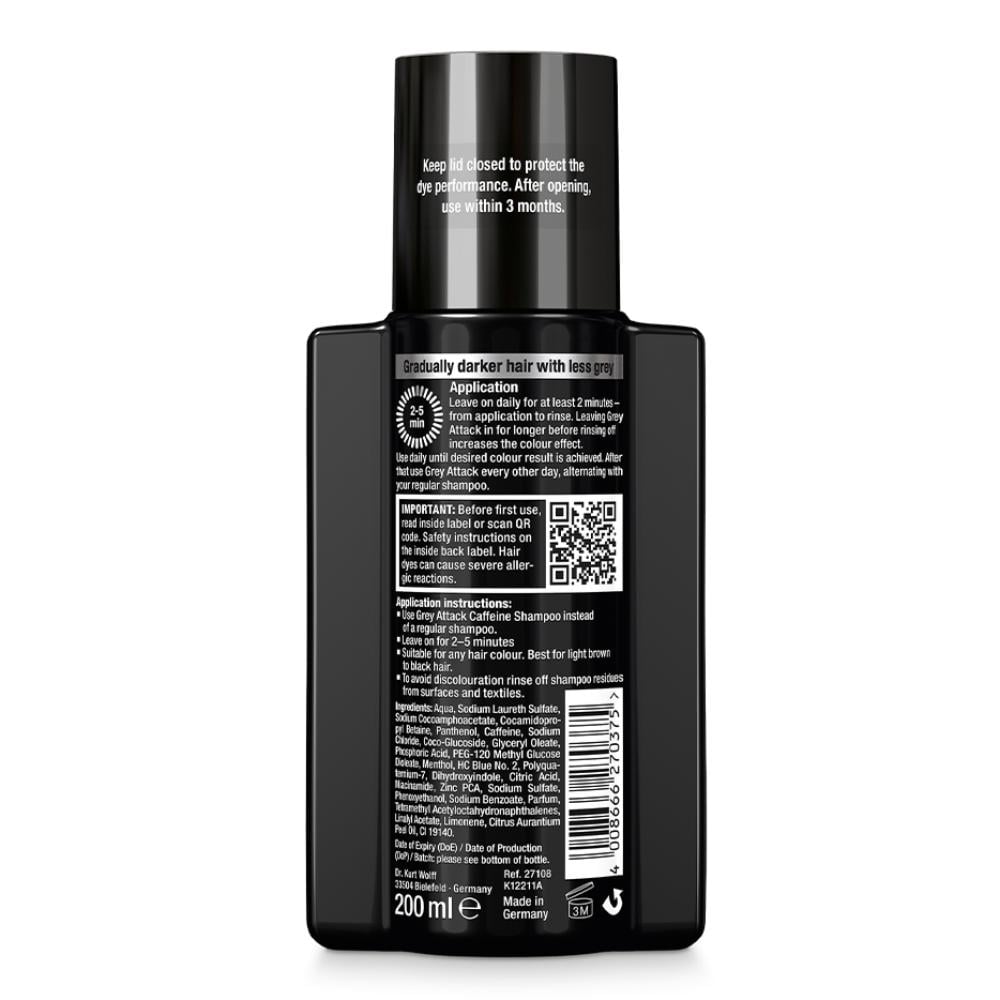 يعتبر Grey Attack مثاليًا للذين لديهم بداية ظهور شعر رمادي أو شعر رمادي قليلاً بالفعل، مع Grey Attack، يمكنك بسهولة الحصول على شعر أغمق تدريجيًا مرة أخرى عند غسل شعرك، دون وقت استخدام طويل أو معالجة معقدة، يصبح تأثير اللون أكثر كثافة مع الاستخدام المنتظم ولا يتلاشى مرة أخرى