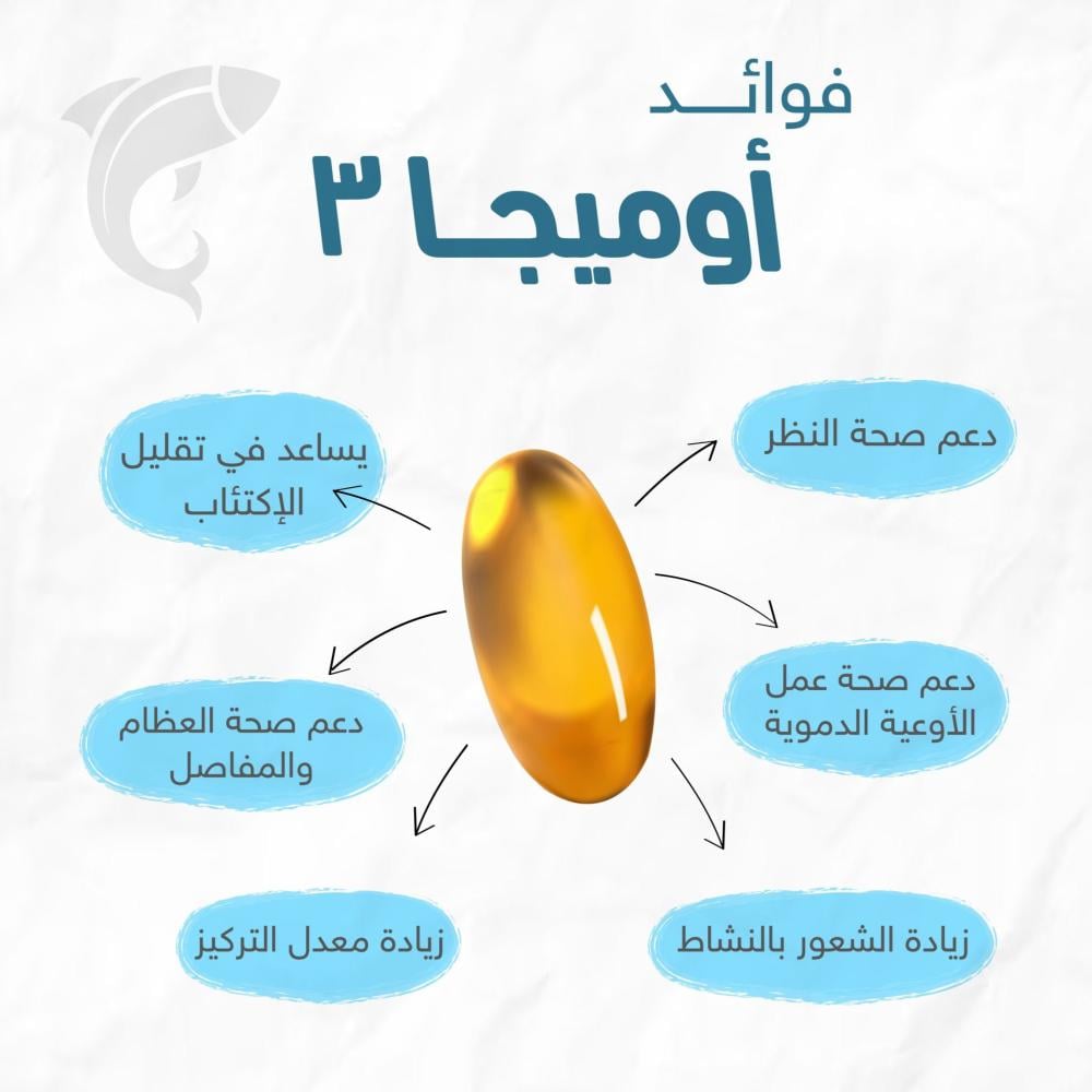 كما أنها مصممة بتقنية عالية الامتصاص في الجسم للاستفادة من فوائد الأحماض الدهنية الأوميغا 3 وبقوام سهل البلع لا يترك أي مذاق سيء في الفم بعد الاستخدام