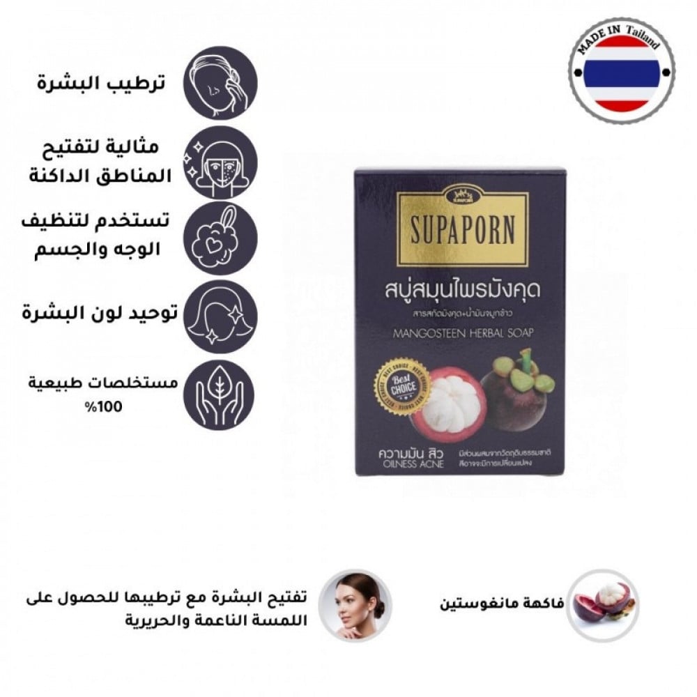 - تمتع ببشرة الجسم المتجددة كل يوم مع صابون الأعشاب التايلاندي سوبابورن ، المصنوع سريرياً من مستخلص فاكهة مانغوستين وزيت جنين الأرز