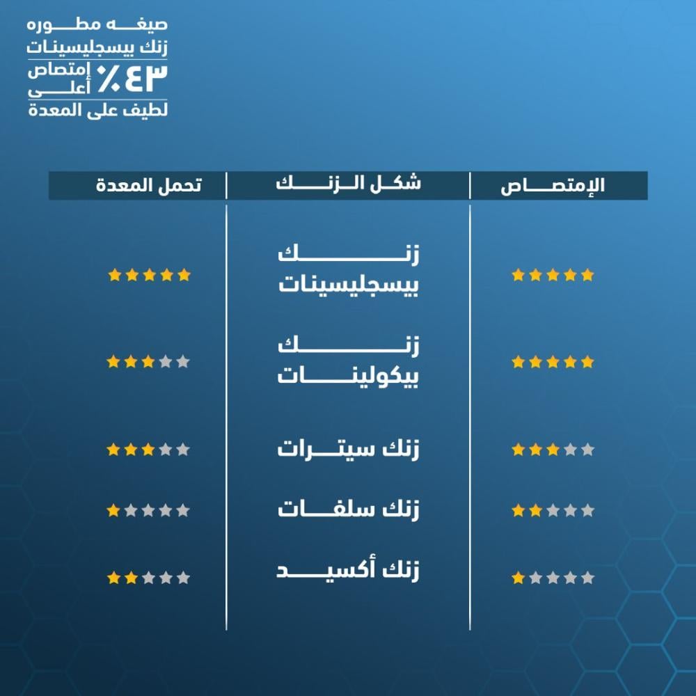 - امتصاص أعلى بنسبة 43% مقارنةً بأنواع الزنك الأخرى