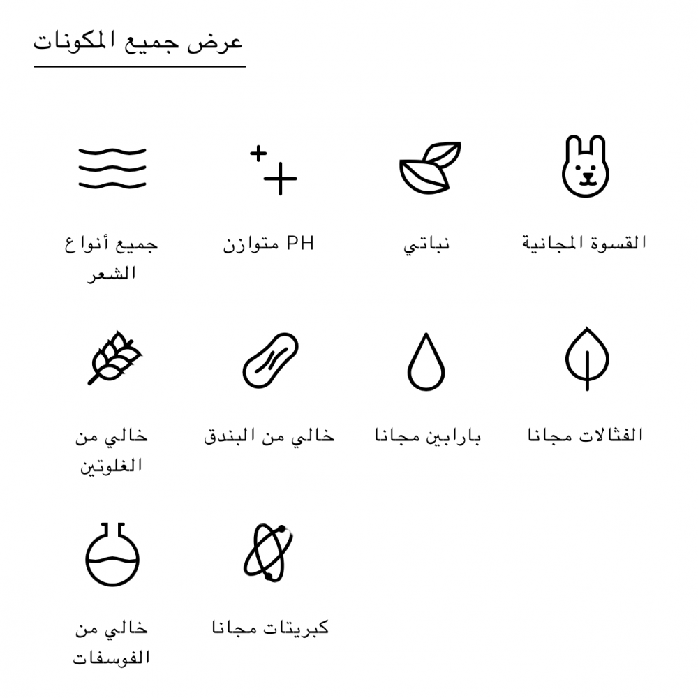 ماء ، ثنائي أمينوبروبيل ديجليكول ديماليات ، بروبيلين جليكول ، كحول سيتريل ، بيهينتريمونيوم ميثوسلفات ، كحول سيتيل ، فينوكسي إيثانول ، جلسرين ، هيدروكسي إيثيل إيثيل سلولوز ، ستيراميدوبروبيل ثنائي ميثيل أمين ، كواتريميوم-91 ، سيترات الصوديوم EDTA ،بوتيل فينيل ميثيل بروبيونال ، حمض إتيدرونيك ، حمض الأسكوربيك ، فيتانتريول ، توكوفيريل أسيتات ، عصير أوراق الصبار باربادنسيس، بانثينول ، زيت بذور سيموندسيا تشينينسيس (الجوجوبا) ، حمض الستريك ، سوربات البوتاسيوم