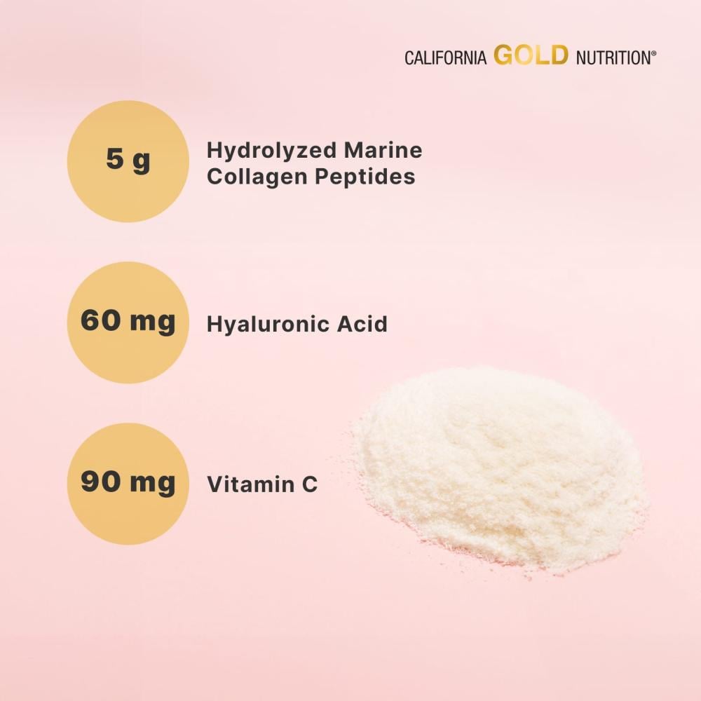 - يحتوي CollagenUPمن California Gold Nutritionعلى بيبتيدات كولاجين بحري خالي من مشتقات الأبقار مع حمض الهيالورونيك وفيتامين جـ. يُحلّل (يُكسر) كولاجين السمك، المعالج بشكل خاص، مائيًا بطريقة إنزيمية إلى بيبتيدات أحماض أمينية منخفضة الوزن الجزيئي ما يساعد في ضمان الامتصاص والتوافر الحيوي الأمثل